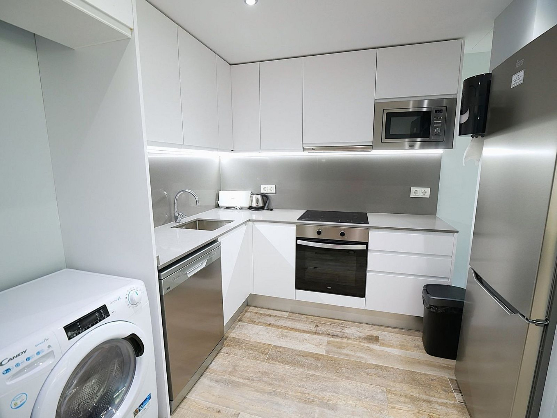 The interior layout is well balanced, featuring two double bedrooms and two full bathrooms, ensuring comfort and practicality. The apartment is presented in excellent condition, ready to move into, with a fully equipped kitchen and carefully selected materials combining ceramic and parquet flooring, providing warmth and durability.
