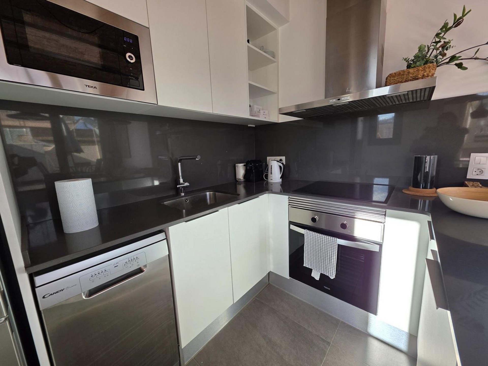 The living-dining area opens onto two spacious terraces, ideal for enjoying outdoor living, creating a relaxing lounge space, a sunbathing area or even a barbecue corner. The apartment includes a double bedroom with an en-suite shower room, designed to provide both comfort and functionality.