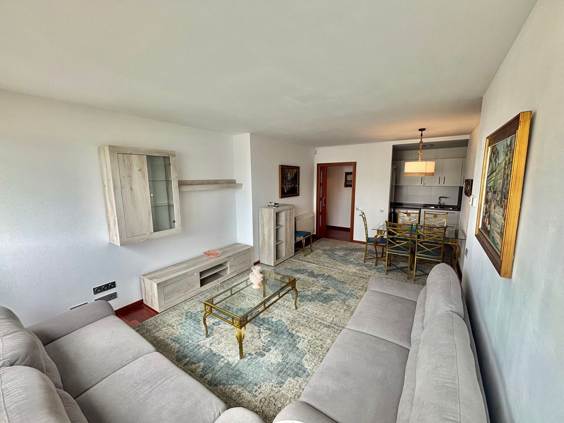 The property spans 78 m² and offers two bedrooms, two bathrooms, a bright living-dining area with open views, and a fully fitted kitchen. It comes furnished, equipped with quality appliances, climate control, and a security system.