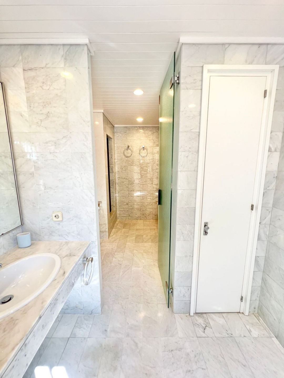 The outdoor areas provide an excellent foundation for redesign, including a private pool, sun terrace, and extensive gardens that can be transformed into a refined Mediterranean retreat. The size of the plot ensures total privacy and flexibility in landscaping.