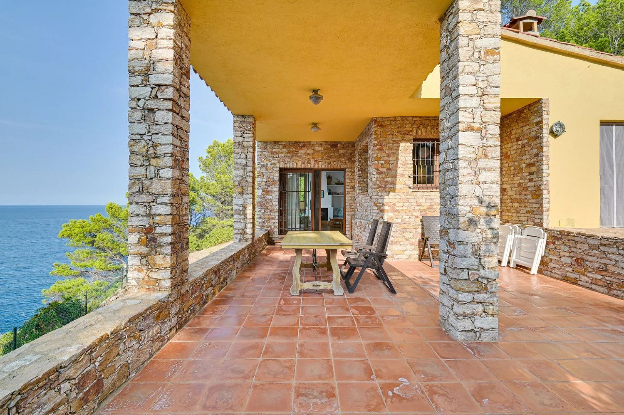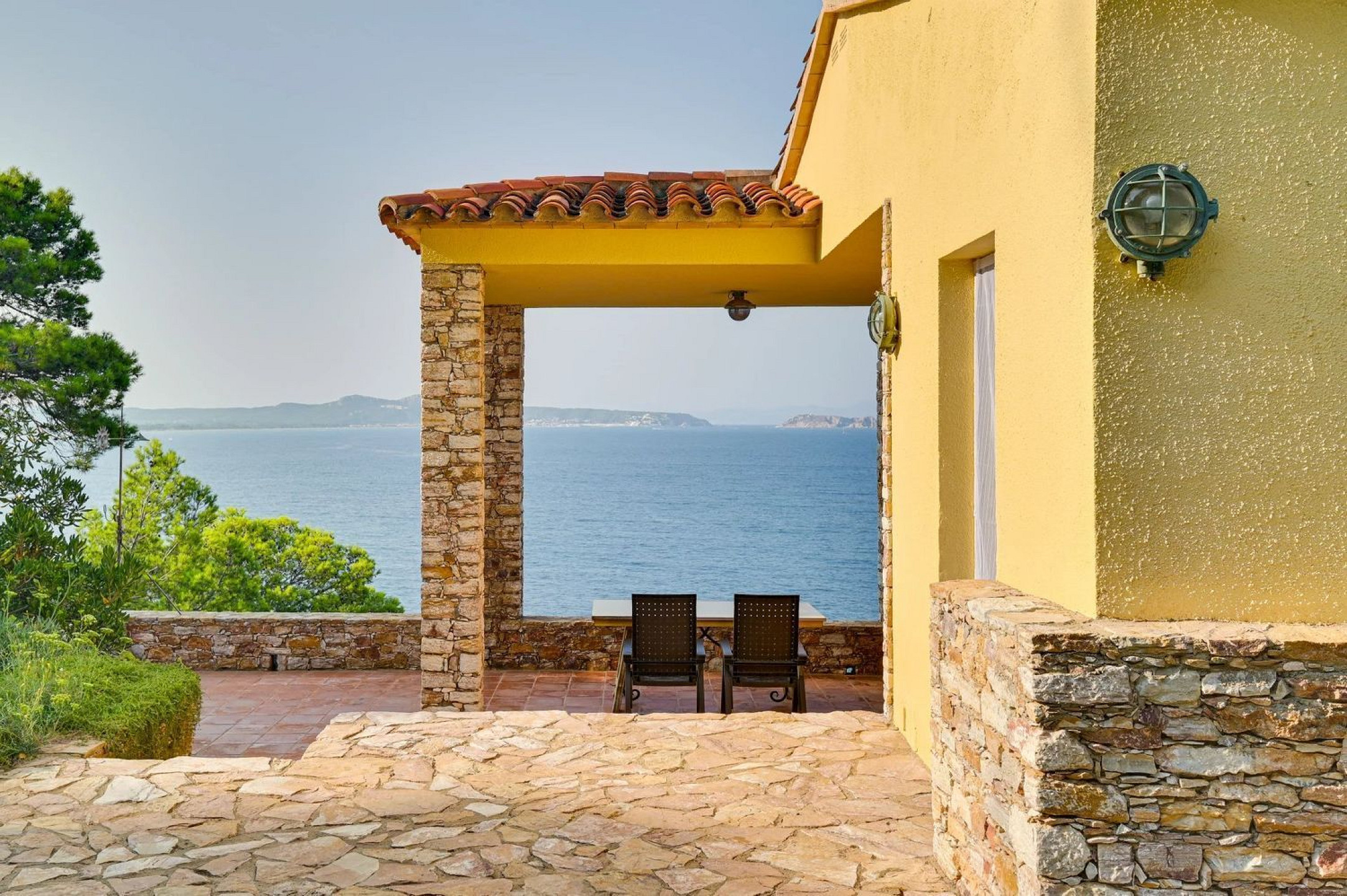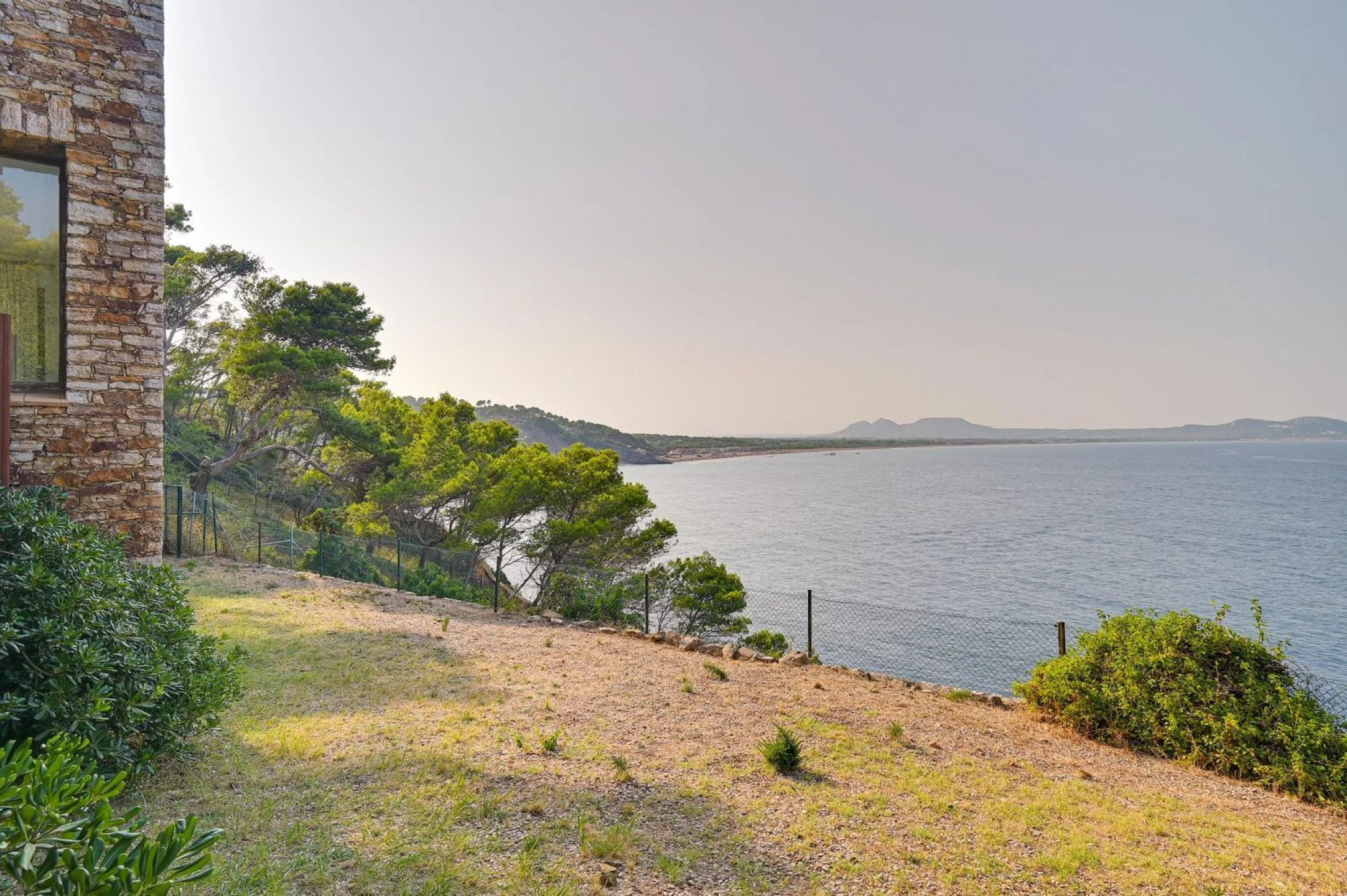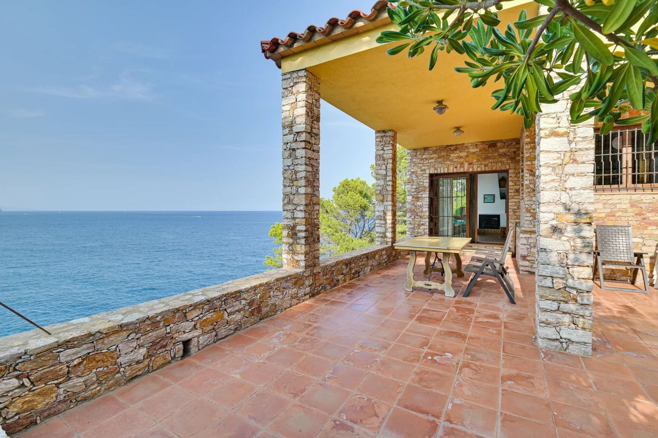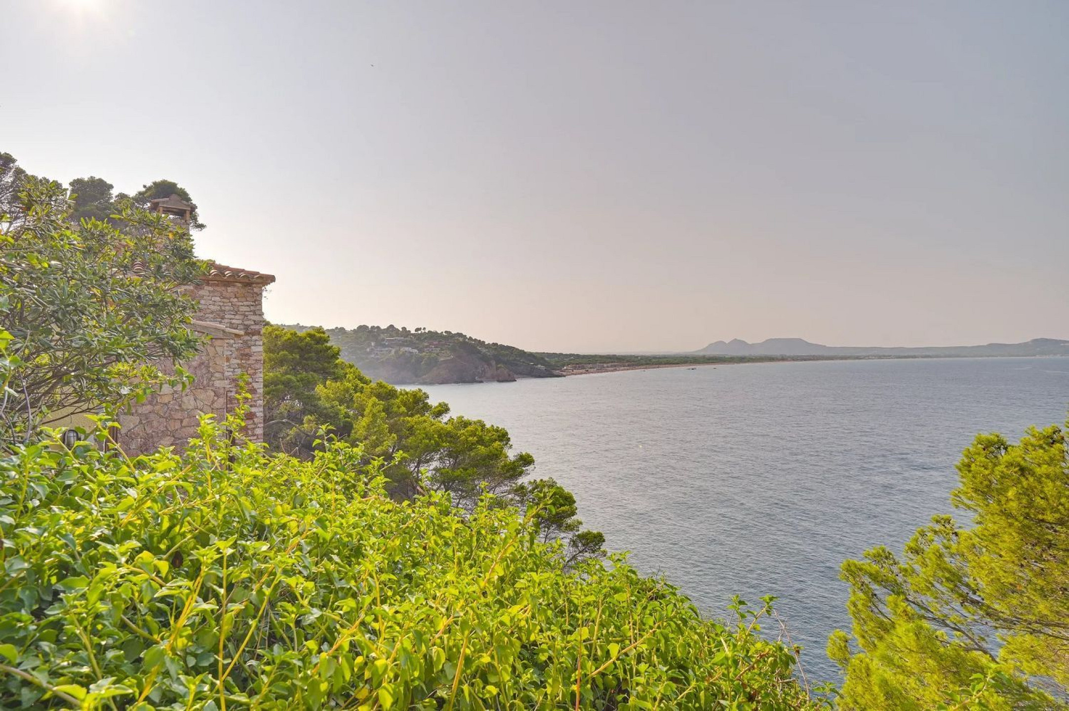 Spectacular Mediterranean-style villa in first-line sea position in Begur, surrounded by lush pine forests and crystal-clear Mediterranean waters. The main residence, built with the iconic Begur stone on a flat plot, offers panoramic views of the Medes Islands from every room.
