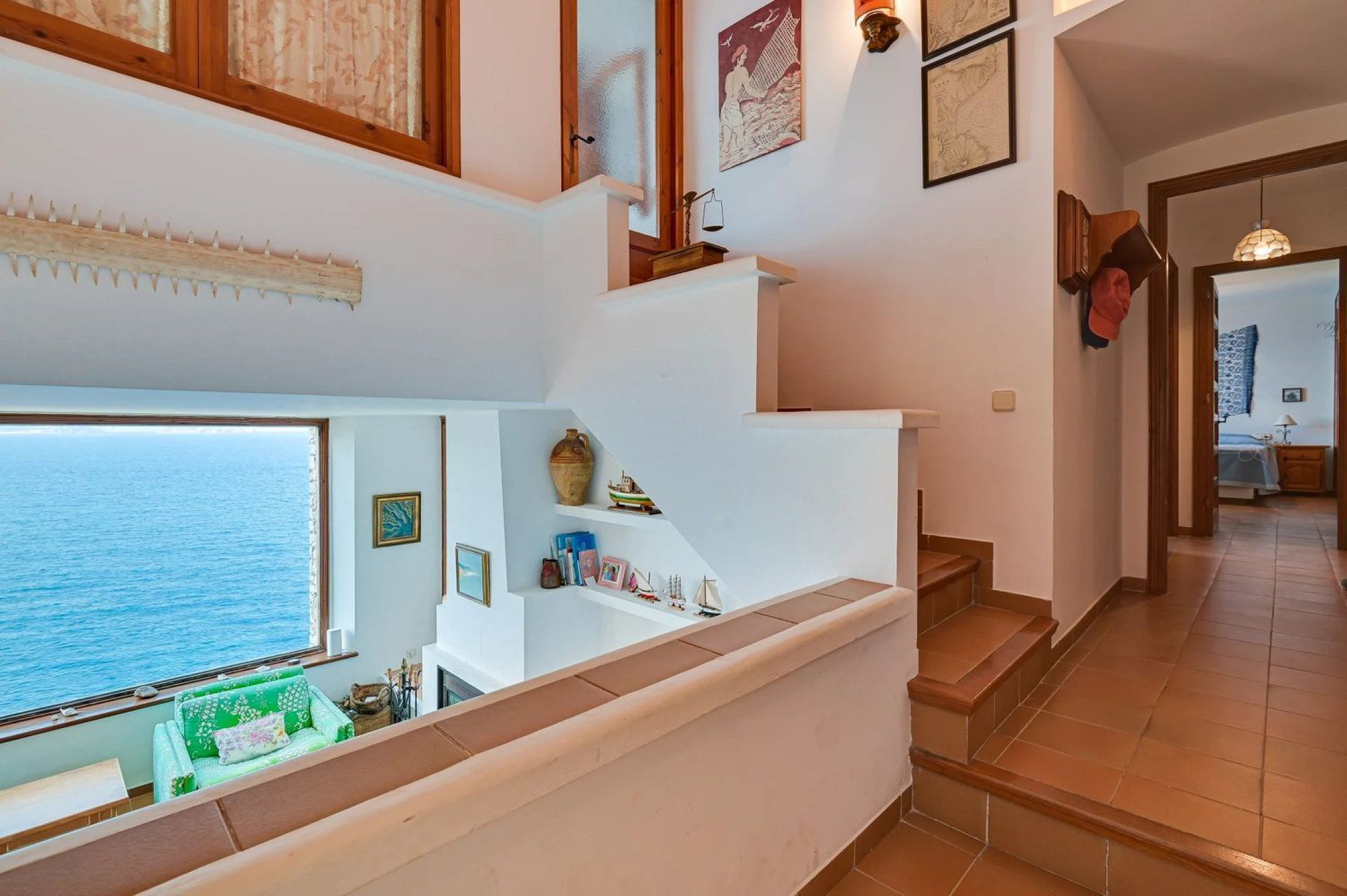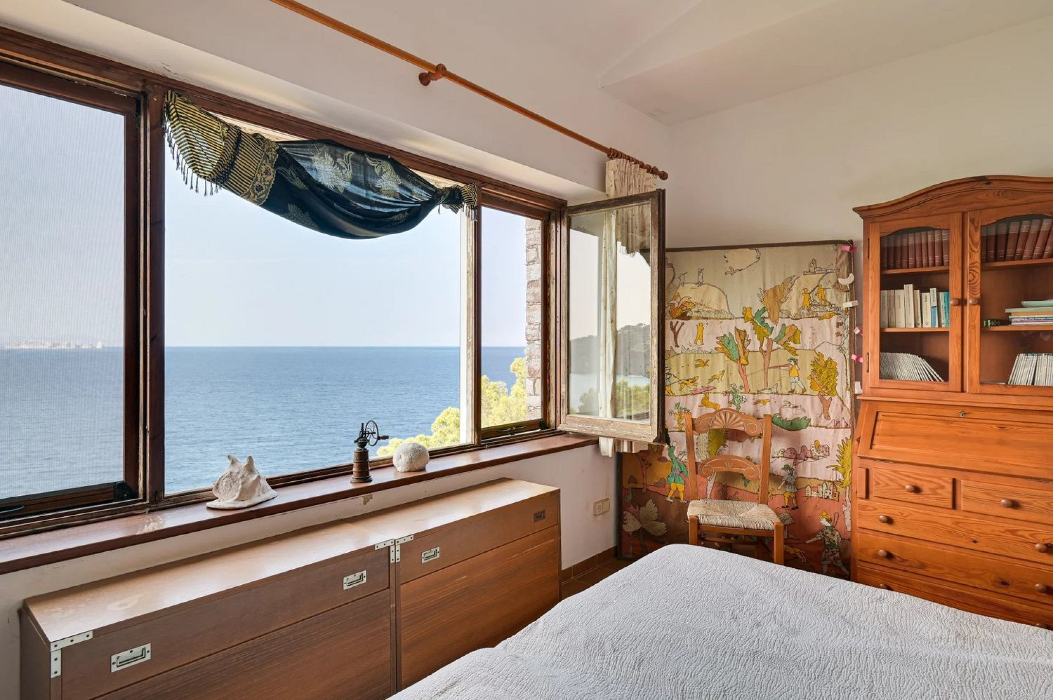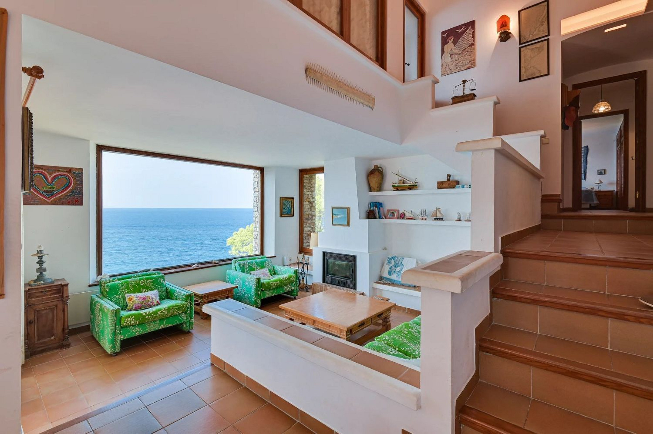 Outside, a garden with breathtaking sea views, a barbecue area, and parking for several vehicles provide ample outdoor living space. Access via a private road ensures total security and privacy.