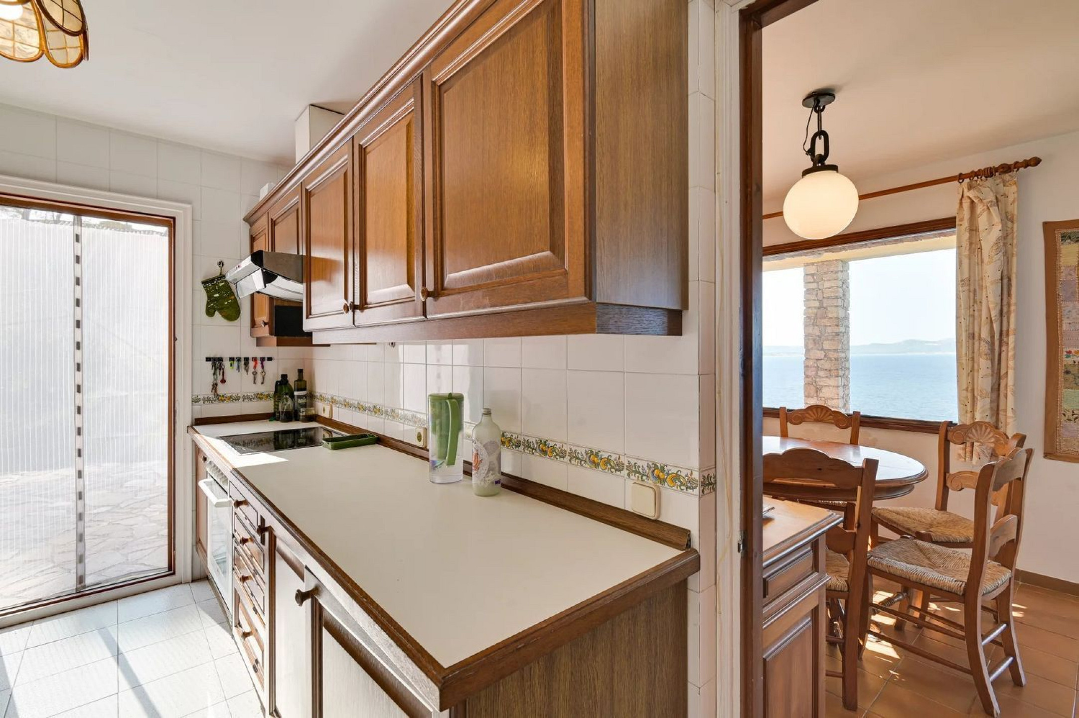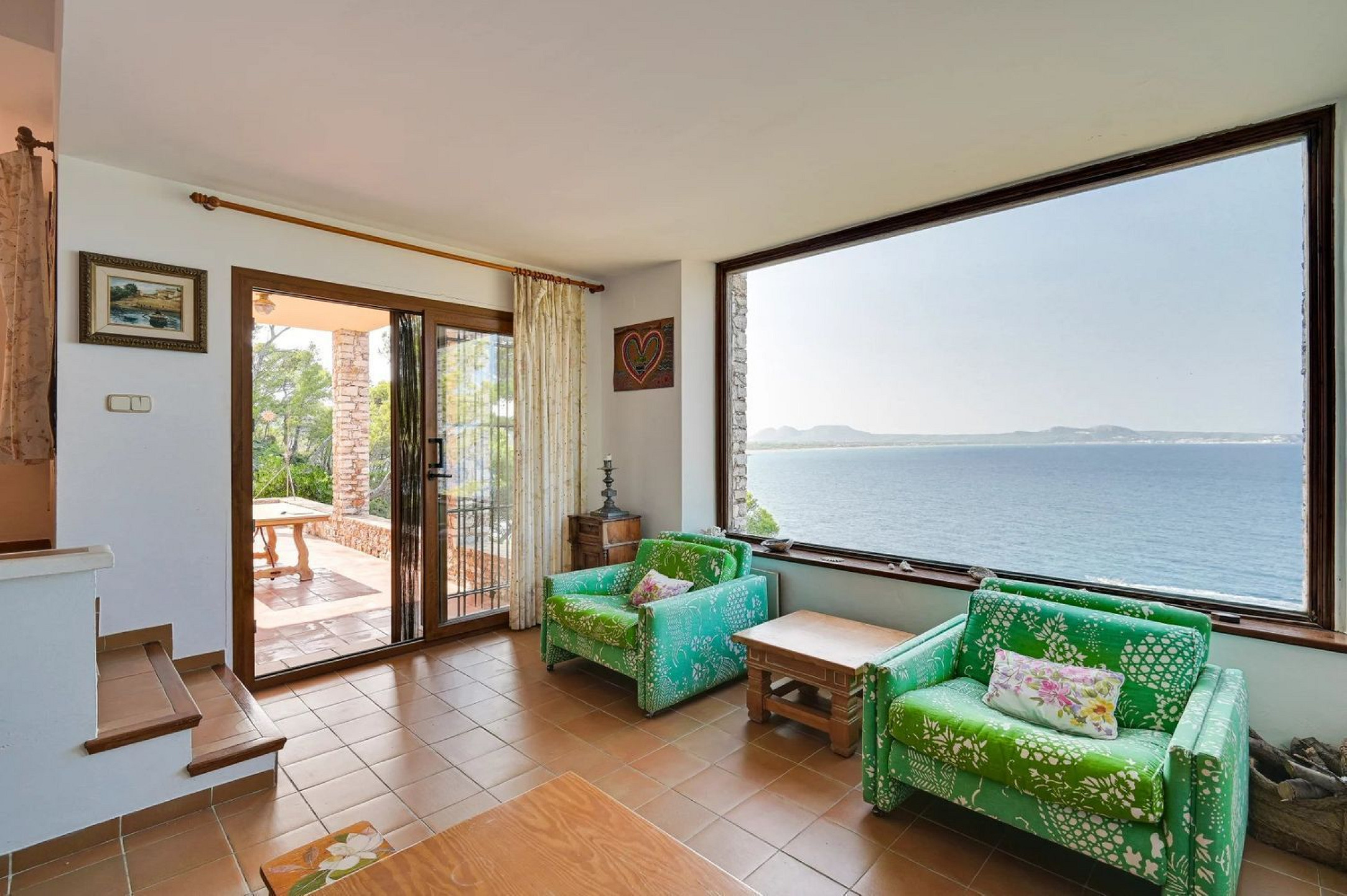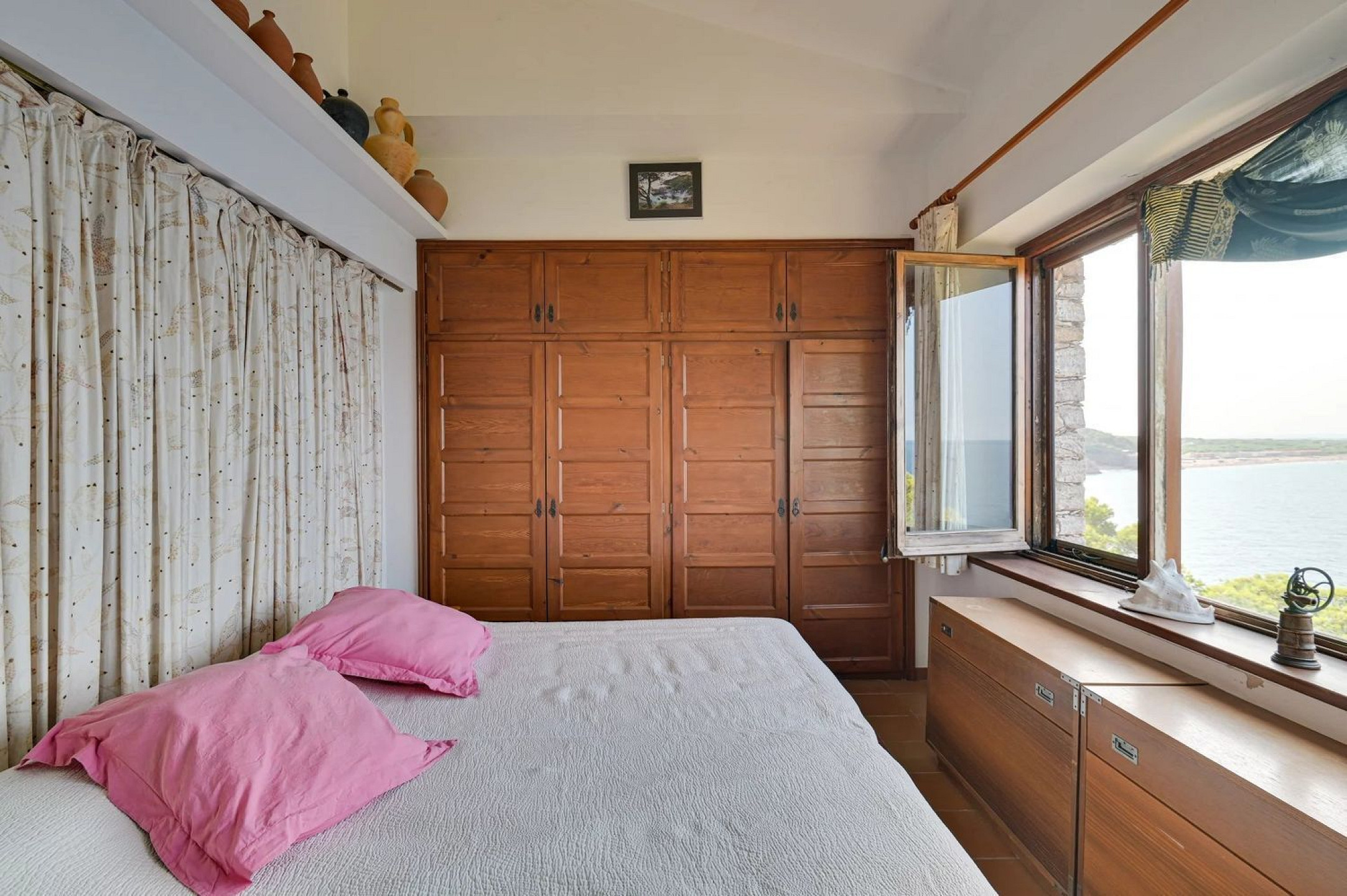 Outside, a garden with breathtaking sea views, a barbecue area, and parking for several vehicles provide ample outdoor living space. Access via a private road ensures total security and privacy.