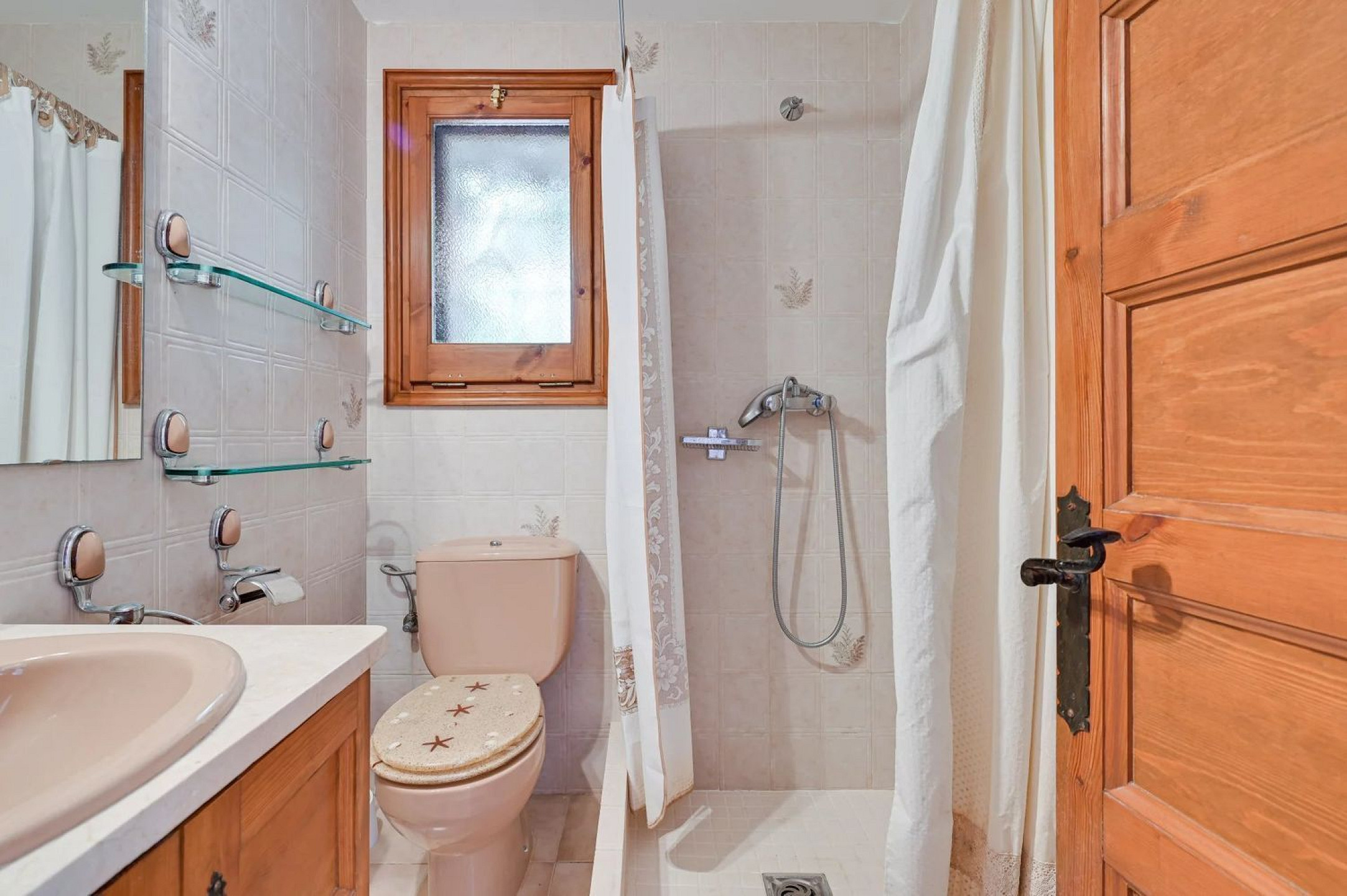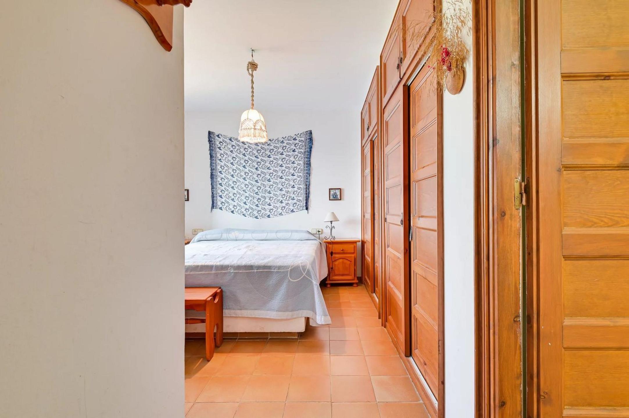The villa features a charming entrance porch, a living-dining area with sea views, a fully equipped kitchen, and a master suite with private bathroom, plus two spacious double bedrooms sharing a full bathroom. The lower floor hosts a separate guest apartment with two double bedrooms and a bathroom, ensuring privacy and comfort.