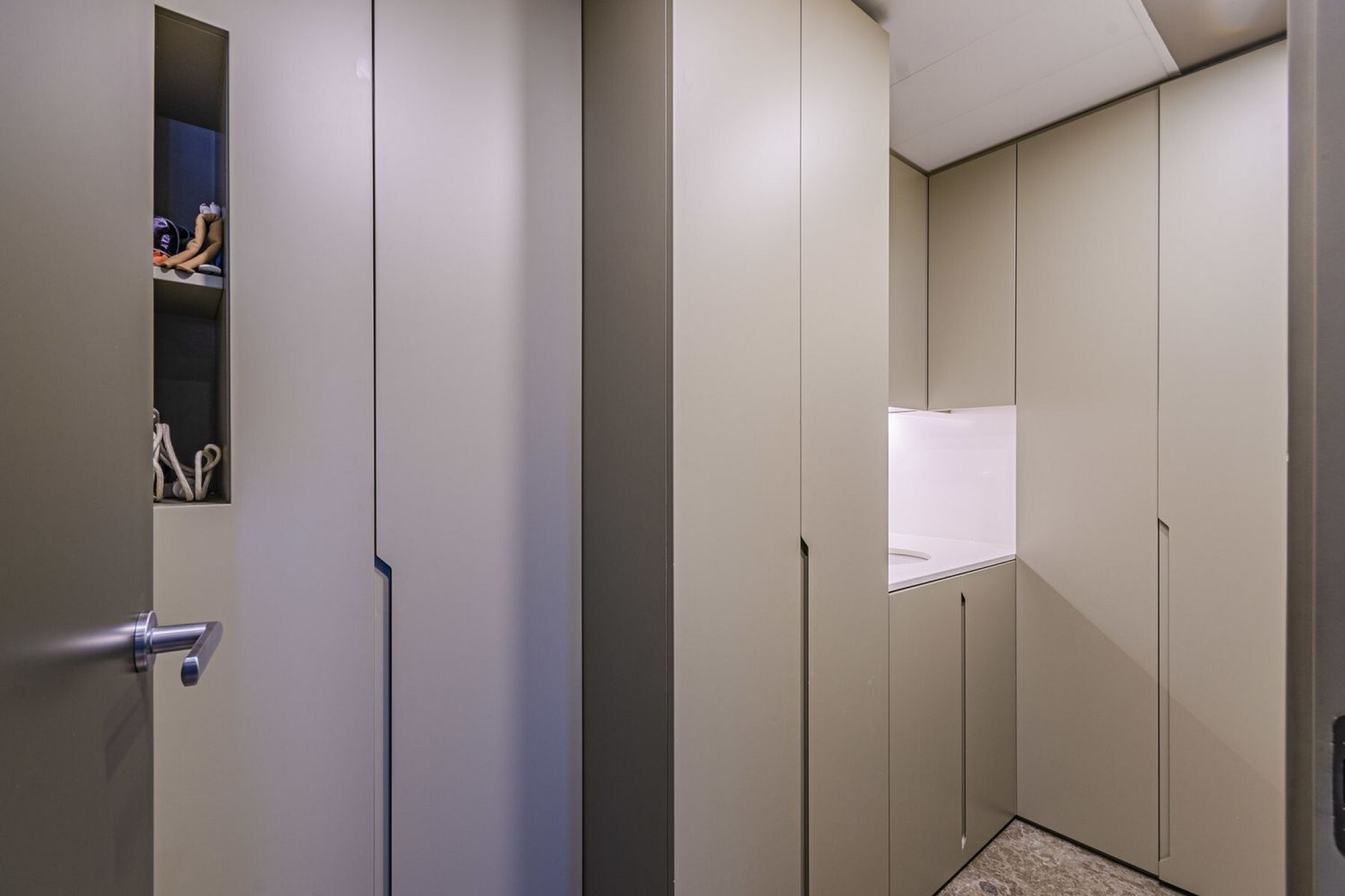 The terrace, accessible from the living room and all bedrooms, provides direct views of the sea and city, and its adjustable sliding panels allow the space to be converted into an indoor area, adapting to the needs of the moment.