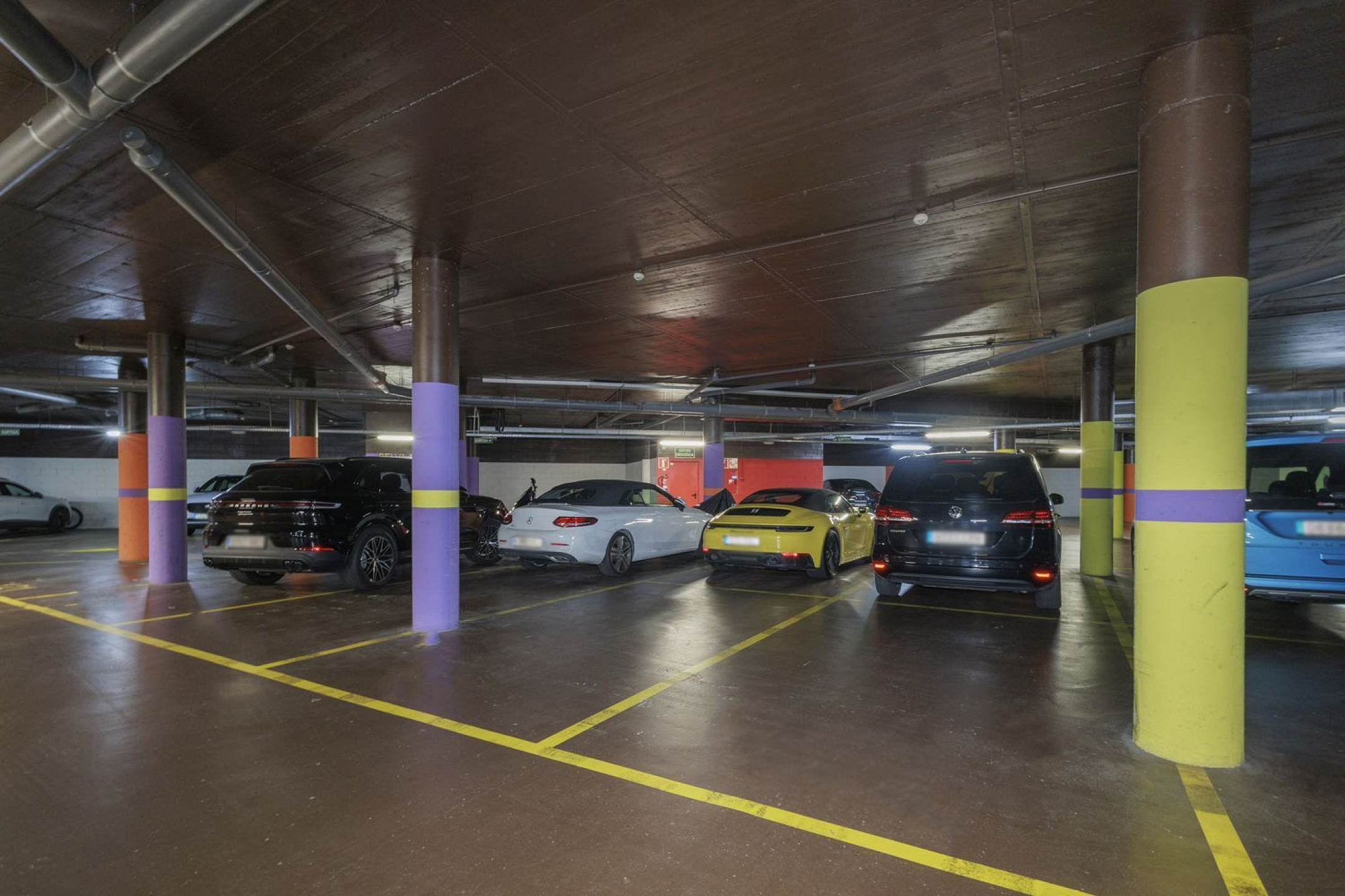 The property is part of an exclusive residential complex with a communal swimming pool, gym, paddle court, concierge service, 24-hour security, four elevators, and a service lift. Included are a parking space suitable for any vehicle and a 14 m² storage room.