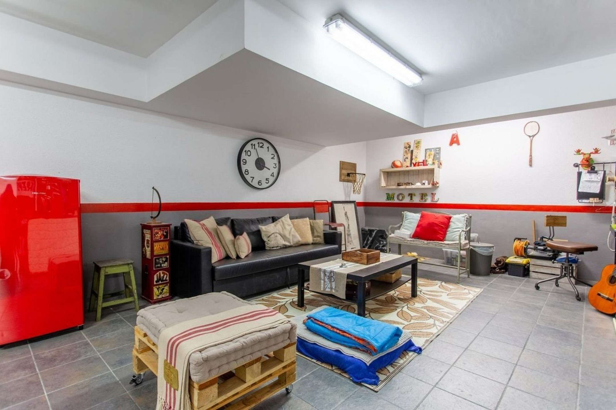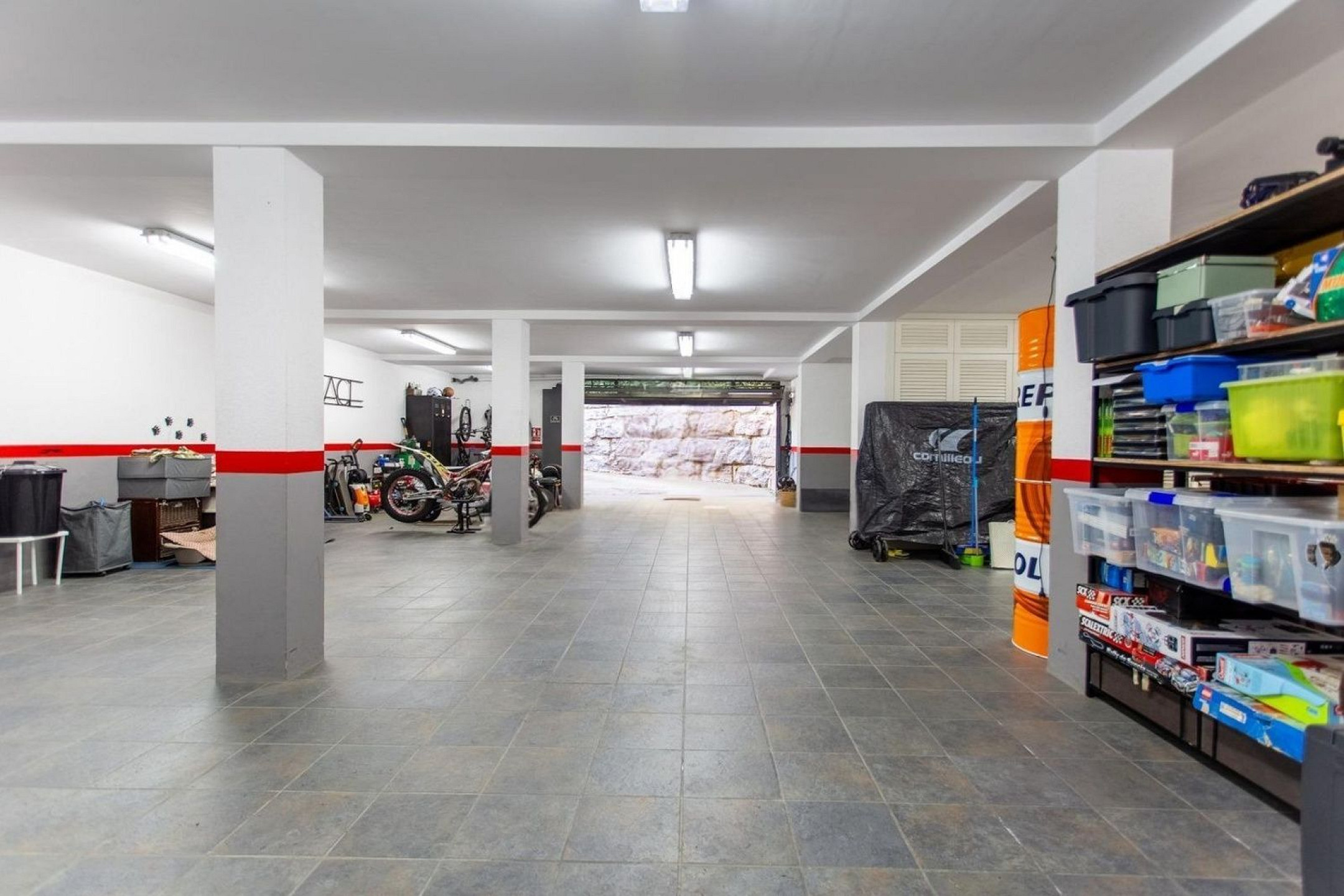 The property features a spacious living-dining room with a fireplace and direct access to the garden and pool, a large kitchen, four bedrooms — one en suite— all with fitted wardrobes, and three full bathrooms. The basement includes a garage for four cars and a guest toilet, with potential to create a multipurpose room without reducing parking capacity.