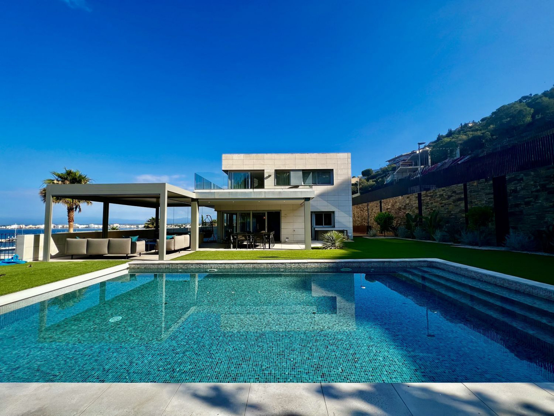 Experience this exclusive villa in Roses, a high-end retreat with unmatched views over the harbor and Puig-Rom. Built in 2010, the property combines modern design, top-quality finishes, and absolute comfort across 858 m² of living space.