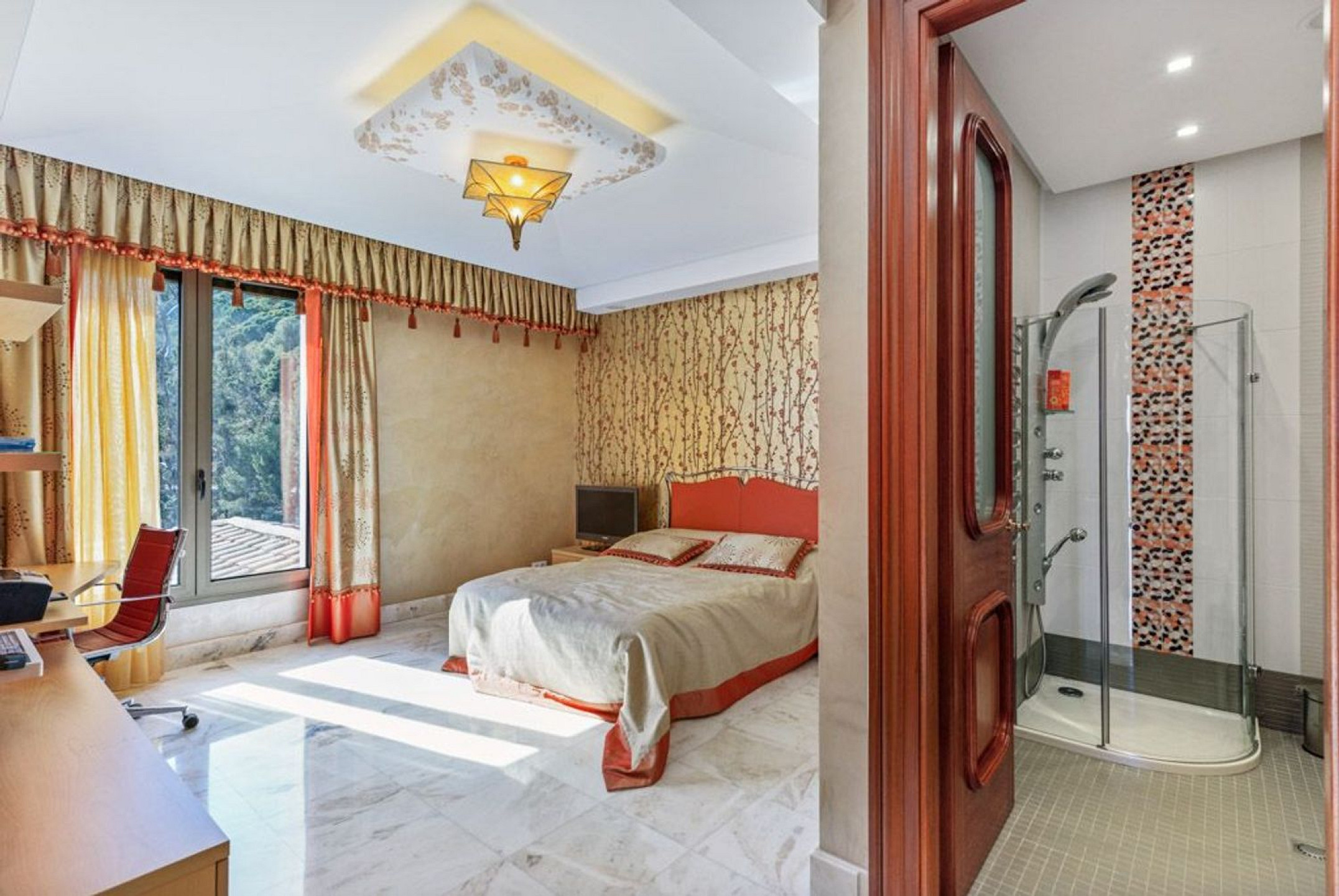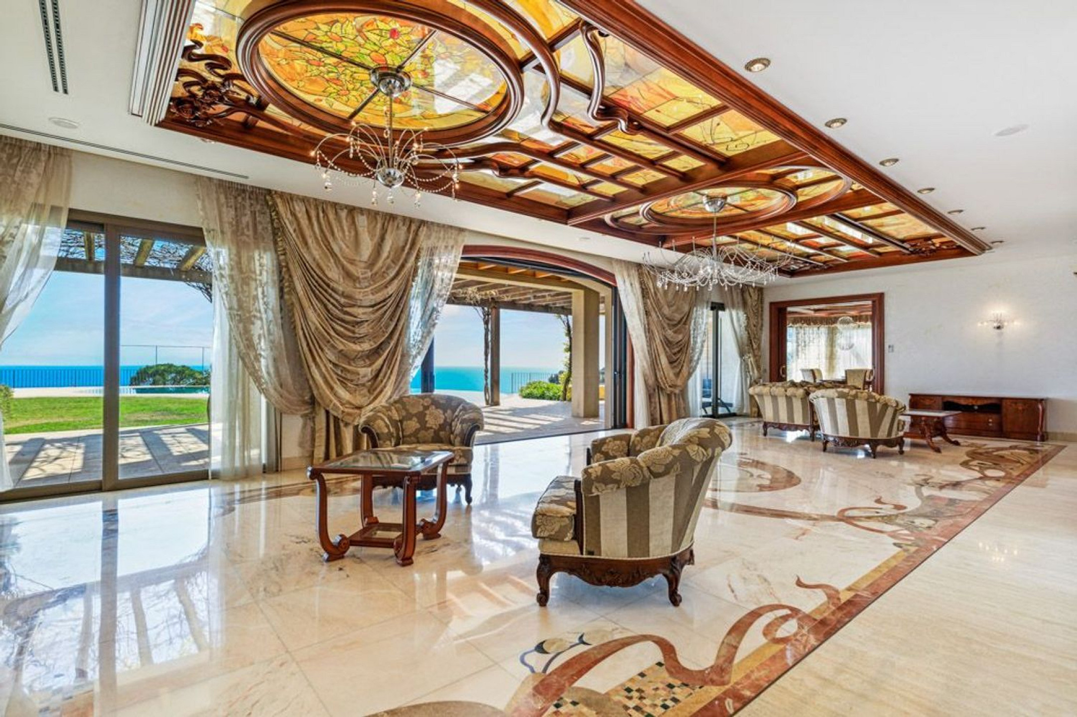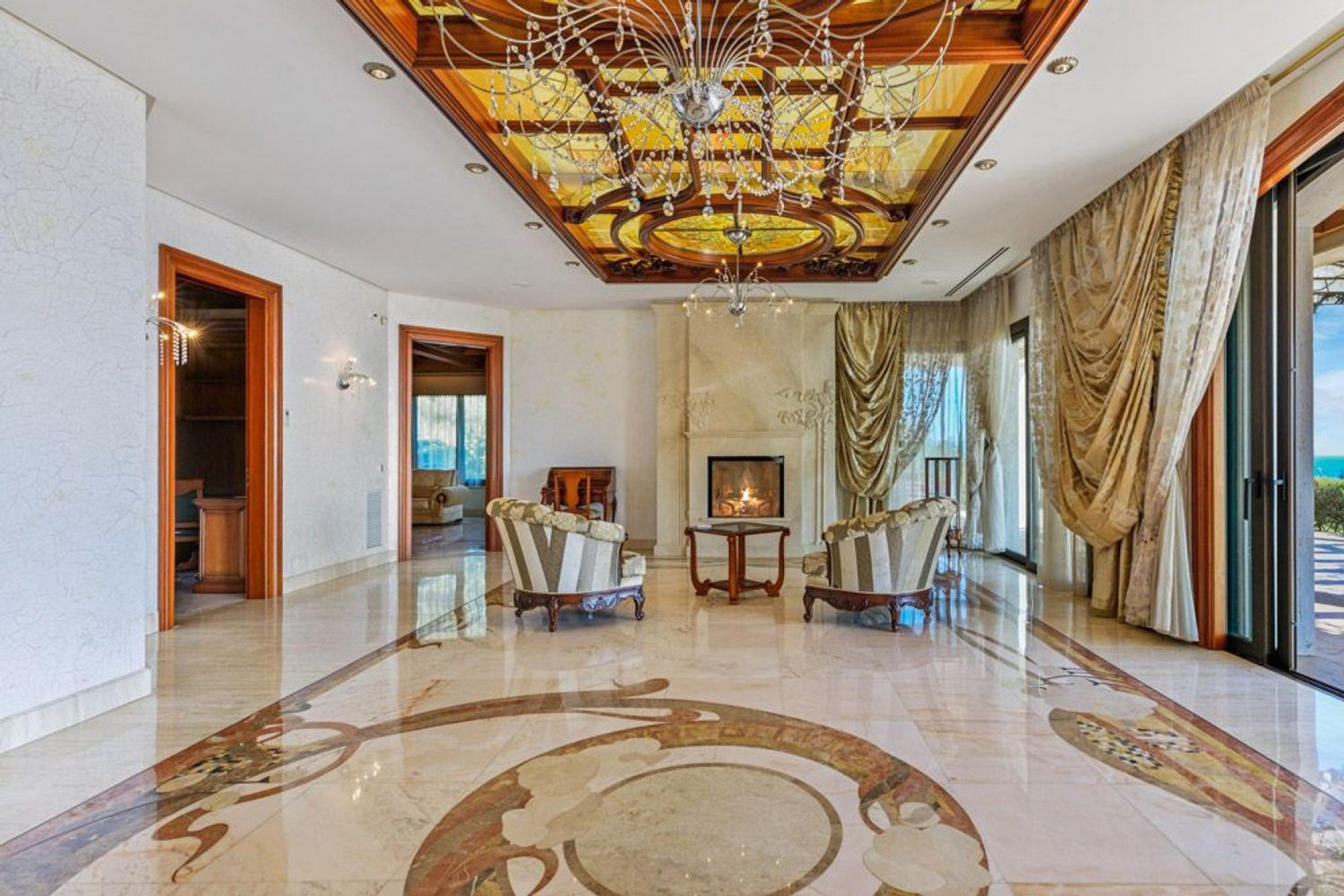 The property also features a guest house with two bedrooms and two bathrooms, as well as a staff house with identical amenities.