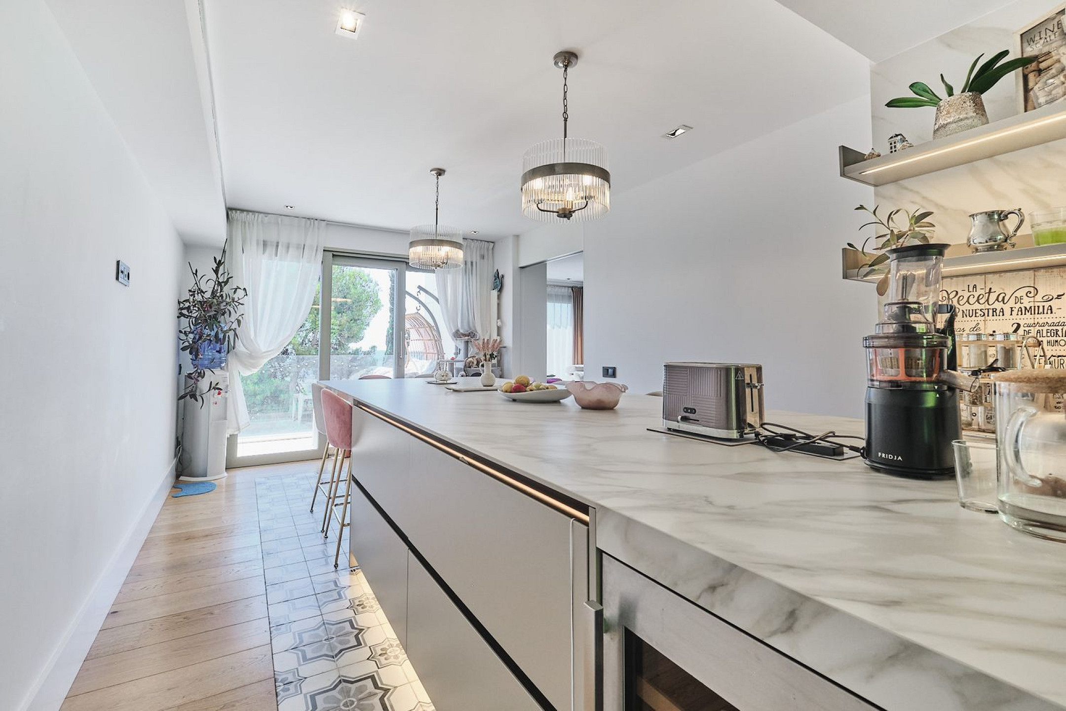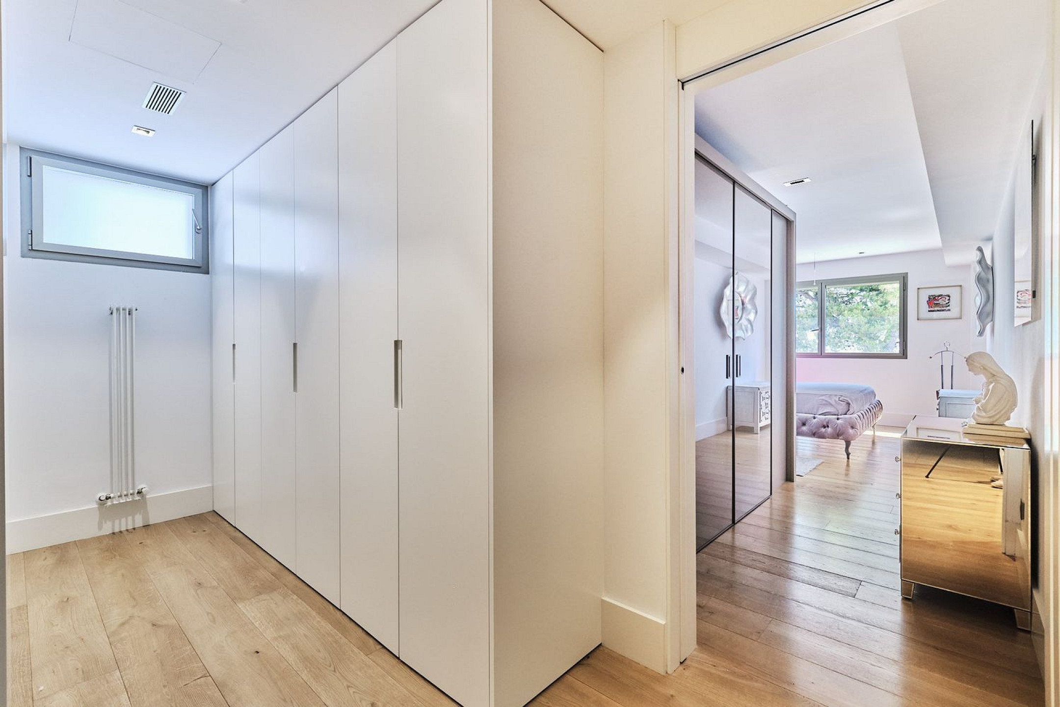 Natural light fills every corner of the home through its strategic orientation and large windows. Each level is accessible by elevator, while the elegant marble staircase with glass balustrades and video intercom system enhance comfort and security. Ducted heating and air conditioning ensure consistent comfort, making this villa a unique home in Sarria.