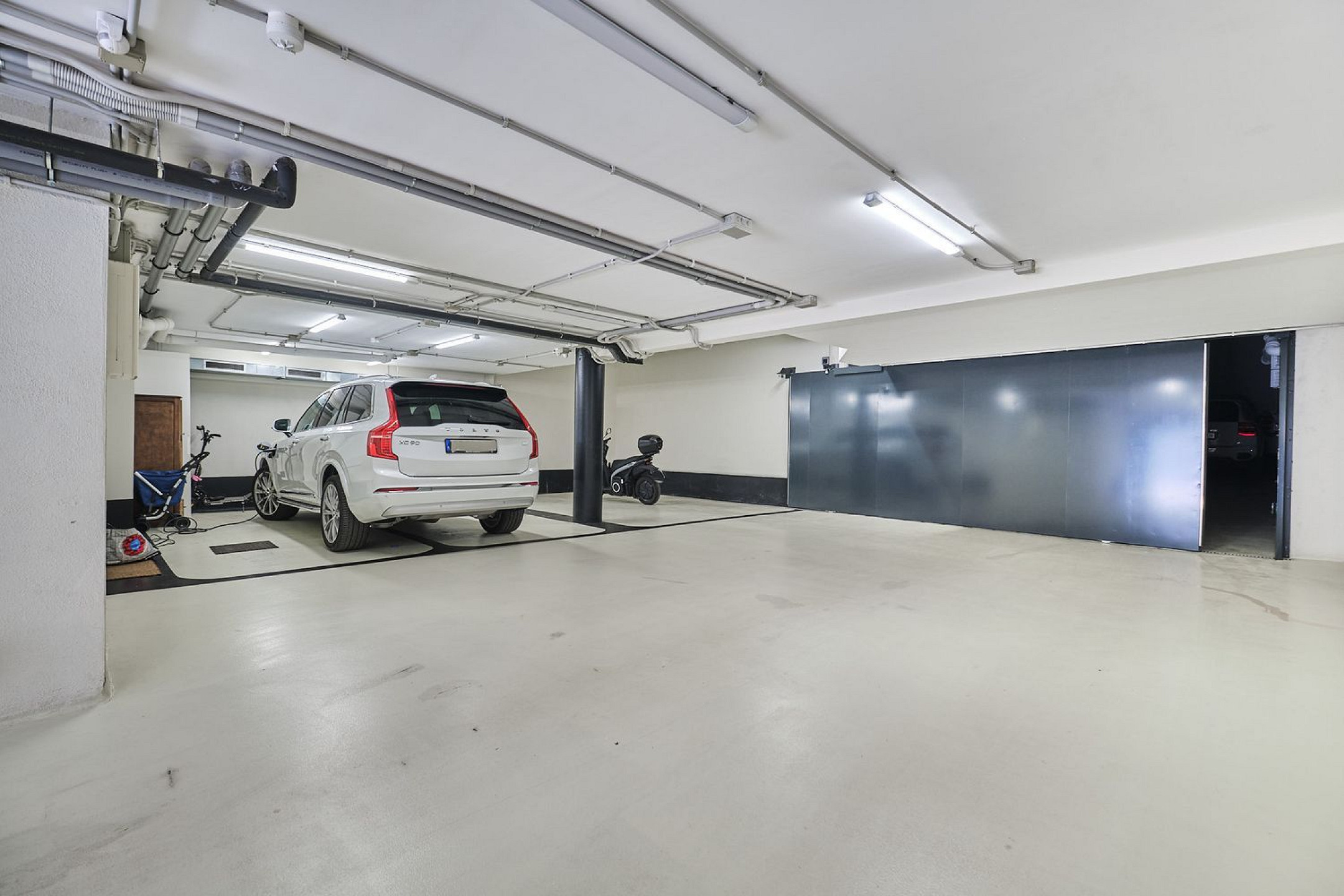Level -2 is dedicated to parking, providing 75 sqm for four vehicles, guaranteeing convenience and security from the outset. Level -1 includes independent spaces ideal for guests or staff, with two double bedrooms, two bathrooms, a utility room, and a 39 sqm lounge with access to a terrace and wraparound porch.