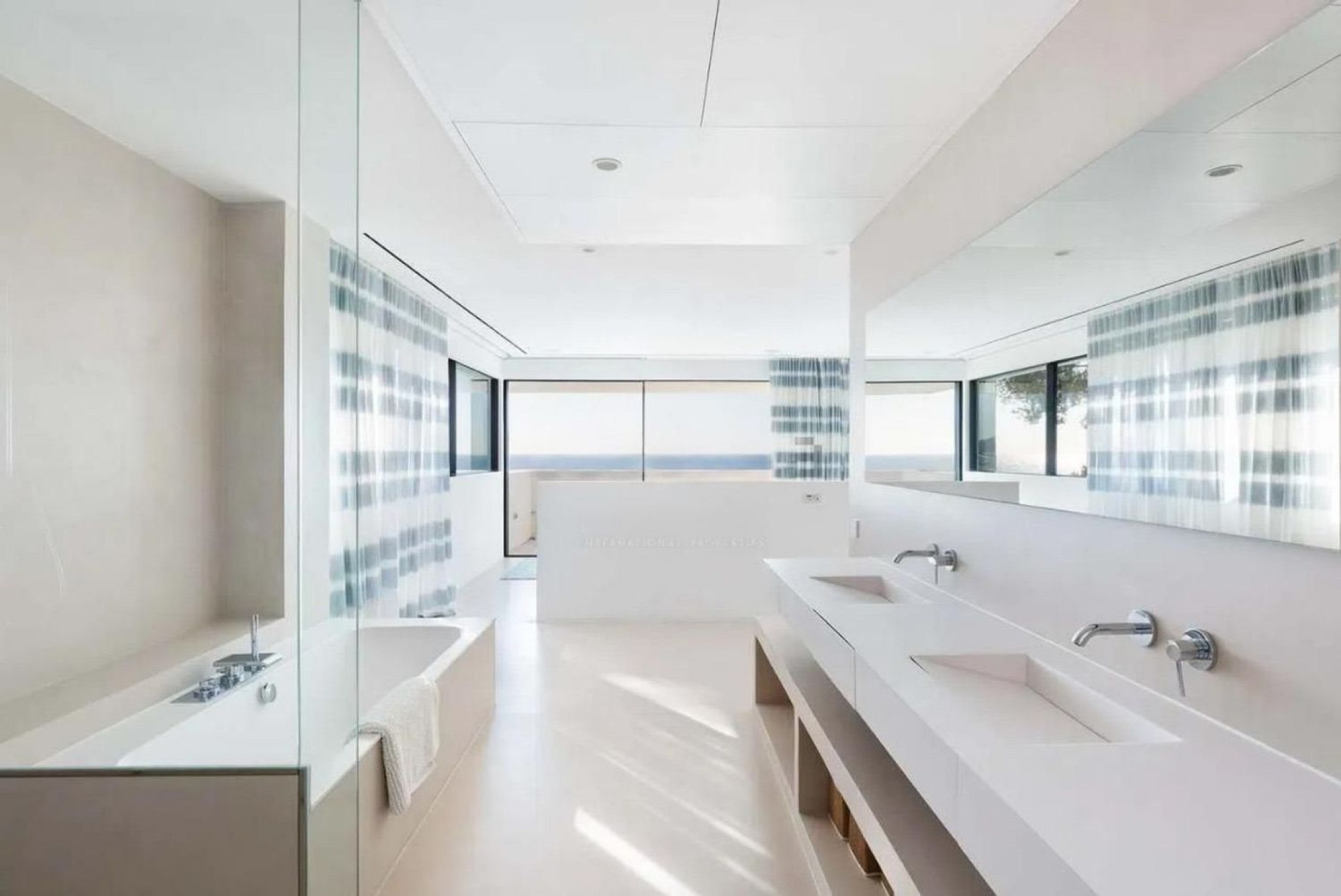 An elevator connects all levels, ensuring ease of access and everyday convenience. In the first residence, the upper floor hosts several en-suite bedrooms designed as private retreats, along with a summer kitchen and access to a large terrace with open sea views, perfect for relaxation and entertaining.