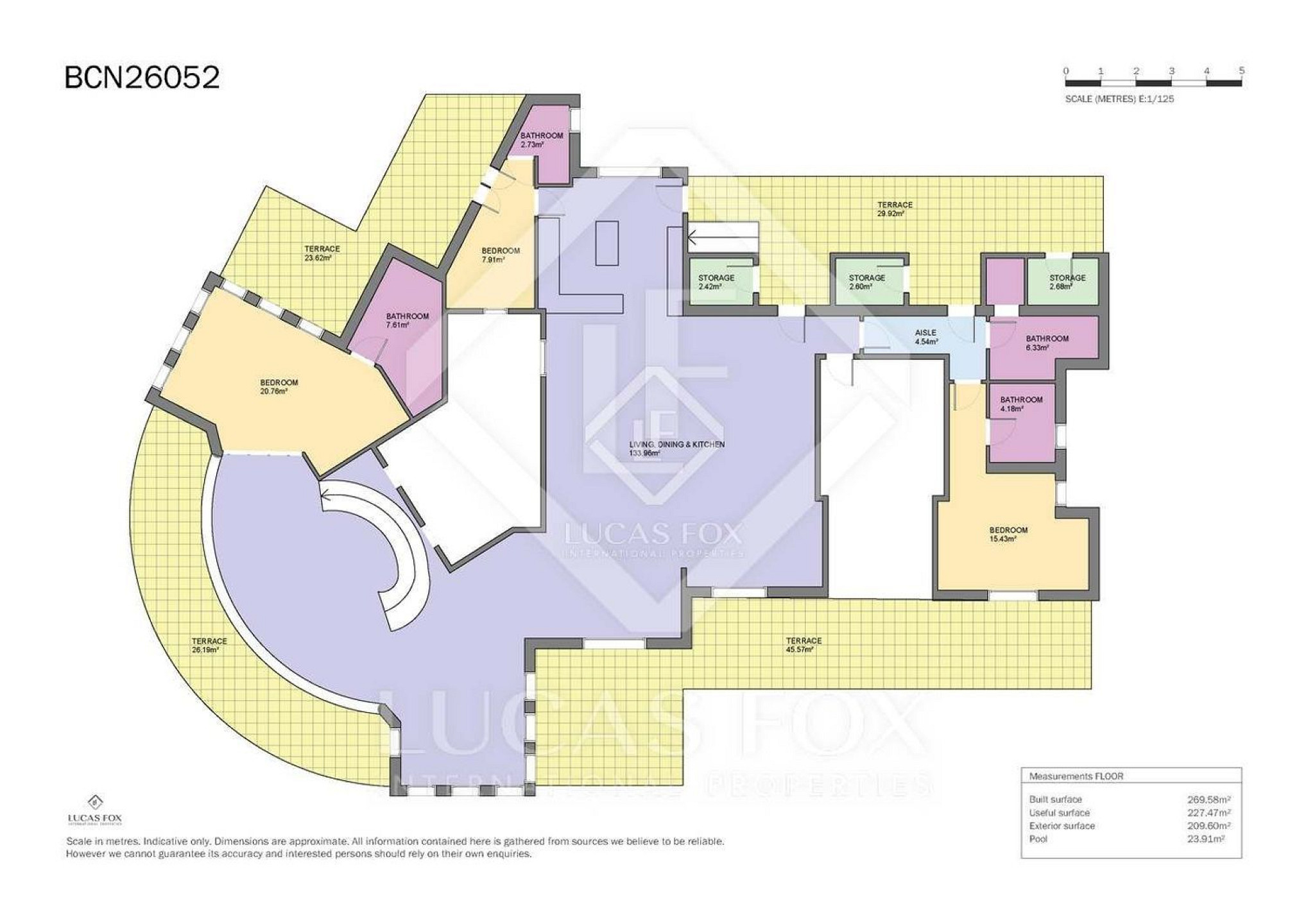 This remarkable penthouse offers 269 m² of built area arranged over two floors, complemented by a four-sided tower, creating a truly distinctive property defined by volume, privacy and a direct relationship with the urban landscape. Direct lift access leads into an entrance hall that opens onto a generous central living space where the dining and lounge areas flow seamlessly, connecting to a terrace on the same level that extends the interior experience outdoors.